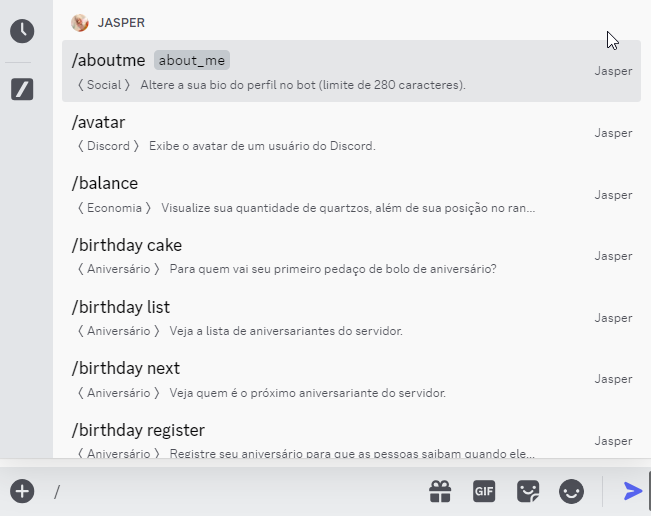 Ligando em 3... 2... 1. Olá! Sou a Jasper, um robô simples e envolvente para o Discord. Posso te
